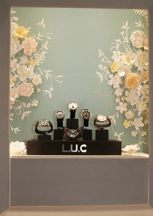 window-display - chopard - paper flowers - francesca signori